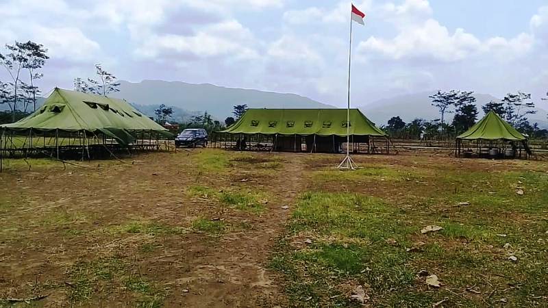 Brebes – Lapangan Sepakbola Desa Kalinusu, Kecamatan Bumiayu, Kabupaten Brebes, Jawa Tengah, kini disulap menjadi tempat pemusatan tinggal Satgas TMMD Reguler 109 Kodim 0713 Brebes, Posko TMMD, dan dapur lapangan untuk mensuplai Satgas TMMD dan warga setempat yang membantu.