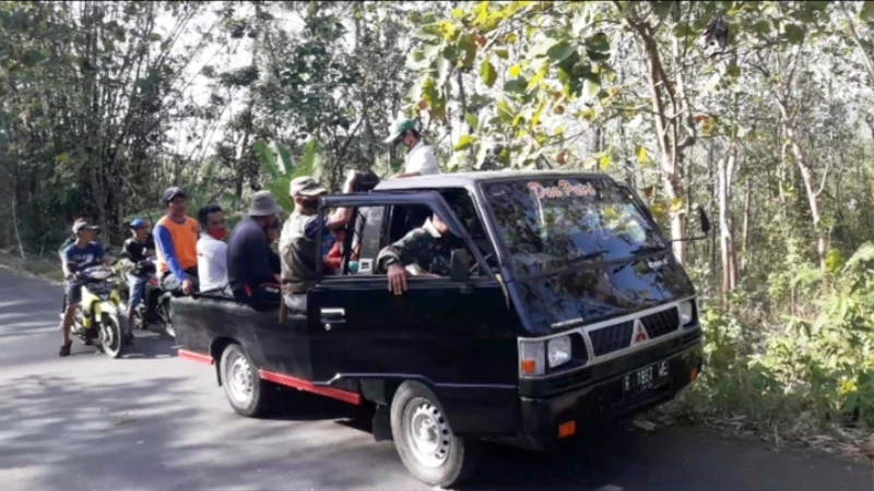 Tak hanya berkorban tenaga dan pikiran saja, namun juga secara sukarela menjadikan mobil pick up nya sebagai kendaraan antar jemput warga menuju ke lokasi pekerjaan fisik TMMD, yaitu pembangunan jalan antar dusun di Kalinusu sepanjang 2,2 kilometer lebar 4-6 meter.