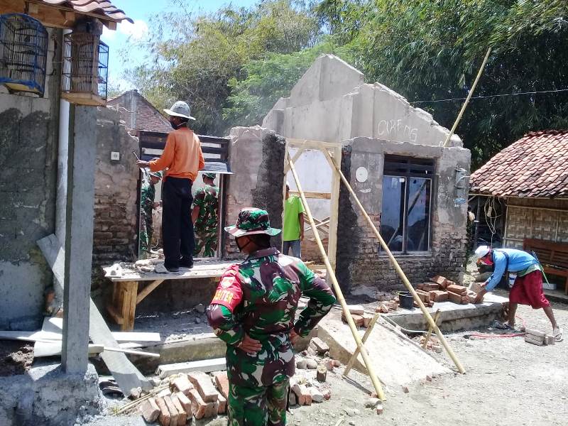 Brebes – Guna memastikan pengerjaan sasaran rehab Rumah Tidak Layak Huni (RTLH) program TMMD Reguler 109 Brebes sesuai dengan yang direncanakan, Pasiter Kodim 0713 Brebes, Kapten Arhanud Nediono, terjun langsung ke lapangan.