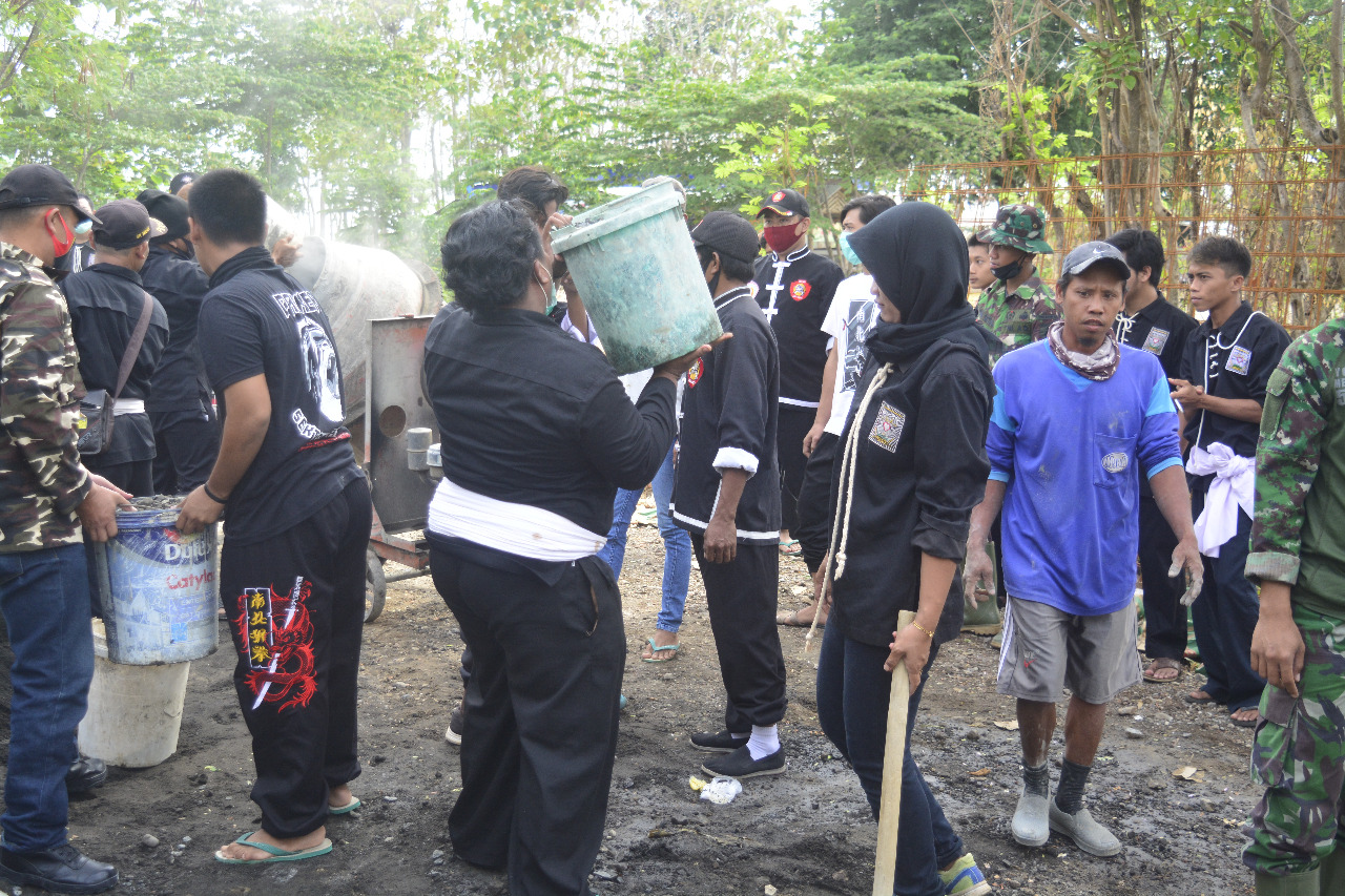 Lamongan,- Sinergitas TNI dengan warga diwujudkan dalam kegiatan TMMD Reg 109 TA 2020 Kodim 0812 Lamongan Desa Tebluru, Kecamatan Solokuro, Kabupaten Lamongan, Jawa timur, hingga saat ini, Satgas TMMD 109 Kodim 0812 Lamongan masih berjibaku bekerja di lokasi kegiatan TMMD, dengan mengangkat semen.
