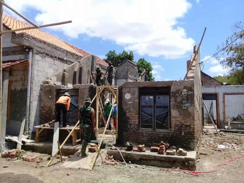 Brebes – Pekerjaan rehab Rumah Tidak Layak Huni (RTLH) program TMMD Reguler 109 Kodim 0713 Brebes, milik Sarto (43), warga Dukuh Karanganyar RT. 02 RW. 01, Desa Kalinusu, Kecamatan Bumiayu, Kabupaten Brebes, Jawa Tengah, adalah menyelesaikan pembongkaran atap dan memasuki plester dinding. Kamis (24/9/2020).