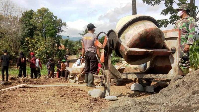 Mereka tampak bahu-membahu terutama di pembangunan talud di kanan kiri jalan sepanjang 2,2 kilometer lebar 4-6 meter, yang merupakan sasaran fisik utama TMMD yang akan berlangsung hingga 21 Oktober 2020 mendatang.