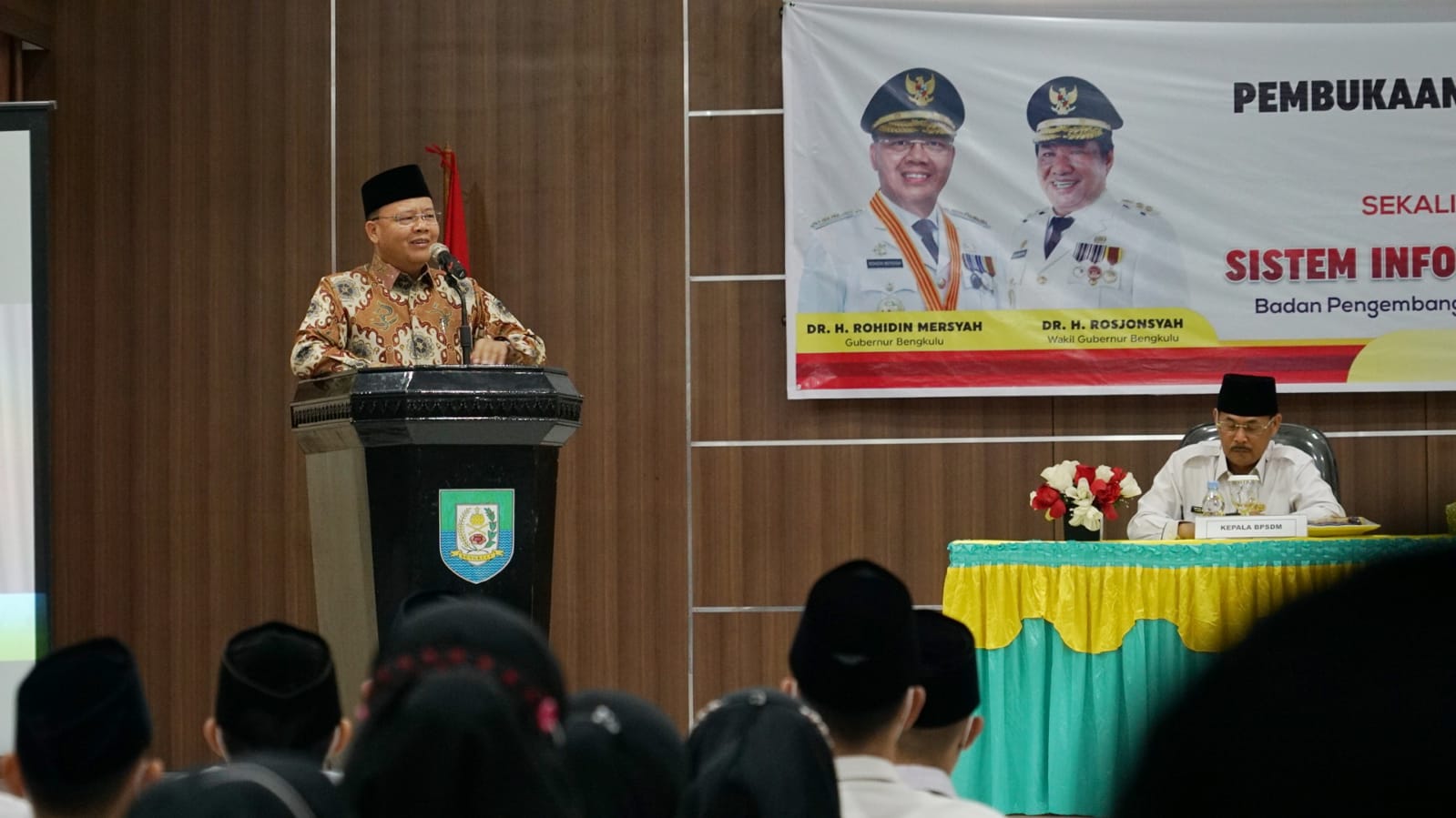 Berandang – Gubernur Rohidin Mersyah launching Aplikasi Sistem Informasi Pelatihan (SILAT), berbasis WEB yang dirancang guna memudahkan peserta dalam mendapatkan seluruh informasi terkait pelatihan yang diselenggarakan Badan Pengembangan Sumber Daya Manusia Daerah (BPSDM) Provinsi Bengkulu.
